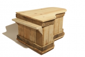 Para una decoración musical, auténtica y práctica, el baúl piano, constituye un auténtico arcón de almacenaje increíblemente decorativo. Este baúl piano te ofrece un gran espacio donde guardar todas tus partituras o bien, los juguetes preferidos de los más pequeños de la casa. También podrás completar tu decoración de interior o exterior, utilizando este original piano baúl, como mesita auxiliar. Dimensiones (cm) : AL 48 x AN 60 x FON 90. Peso: 23 Kg. Composición: Madera reciclada, "Made by hand"