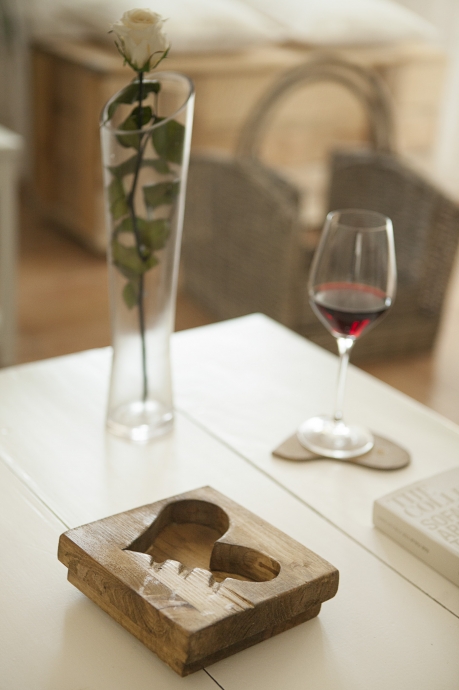 Completa tu nido de dulzura con este corazón cenicero. Quedará perfecto en la mesita del salón de decoración romántica. Demuestra tu amor por la música. Dimensiones (cm): AL 4 x AN 16 x FON 16 . Peso: 0.20 Kg. Composición: Madera reciclada, "Made by hand"