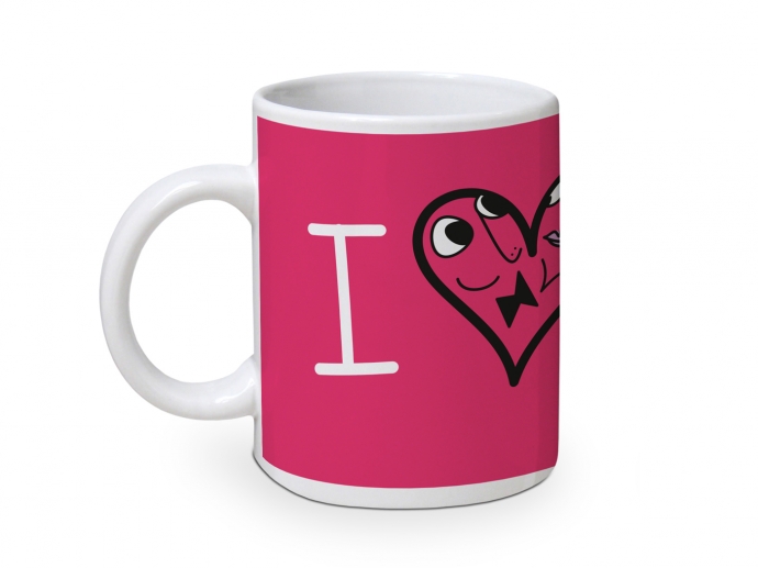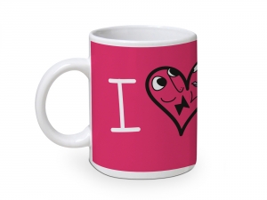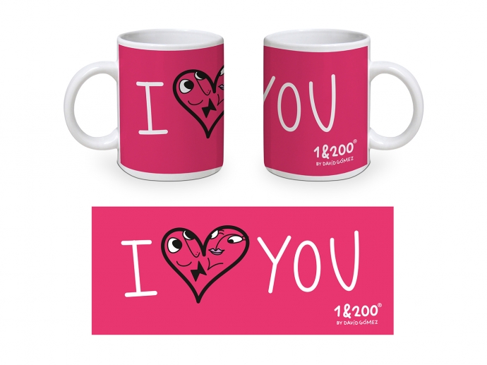Taza con ilustración de "I love you" impresa a todo color. ¡Personaliza tu taza con el nombre o ciudad que desees! . Una vez realizada la compra, mándanos los datos a info@1y200.com