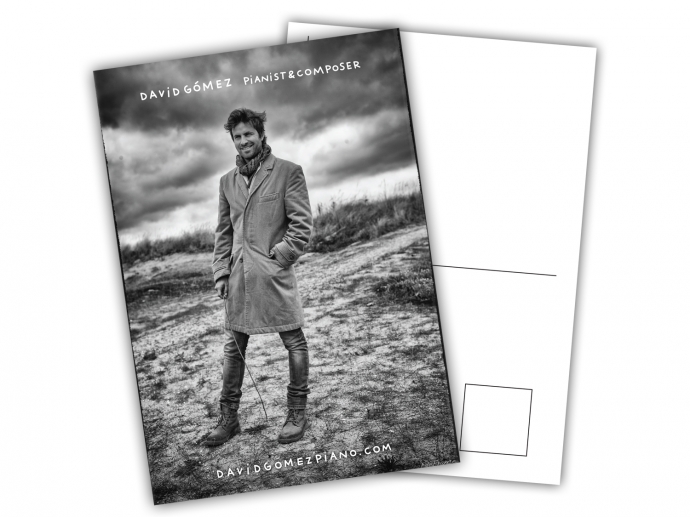 Postal "David Gómez, Pianist&Composer" firmada por el artista.