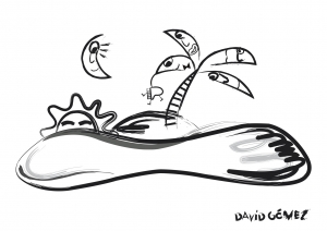 Dibujo 21x30 "The Island" . Técnica mixta . Serie "Pianeando". Réplica , firmada y numerada en el reverso. Serie limitada