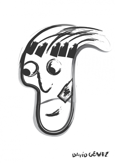 Dibujo 21x30 "Pianolé" . Técnica mixta . Serie "Pianeando". Réplica , firmada y numerada en el reverso. Serie limitada