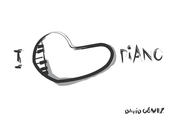 Dibujo 21x30 "I love Piano" . Técnica mixta . Serie "Pianeando". Réplica , firmada y numerada en el reverso. Serie limitada