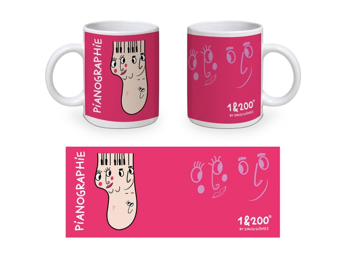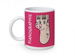 Taza con ilustración de "Pianographie" impresa a todo color.